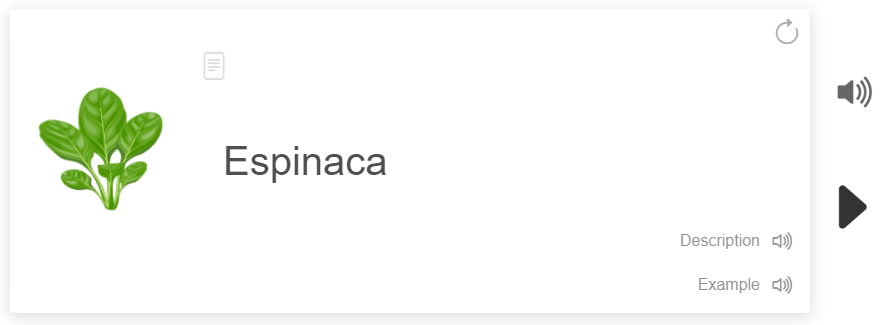 - تقلب البطاقة وتشوف ترجمة الكلمة وترجمة جملة المثال (بينما جملة المثال نفسها تبقى بلغة الهدف).